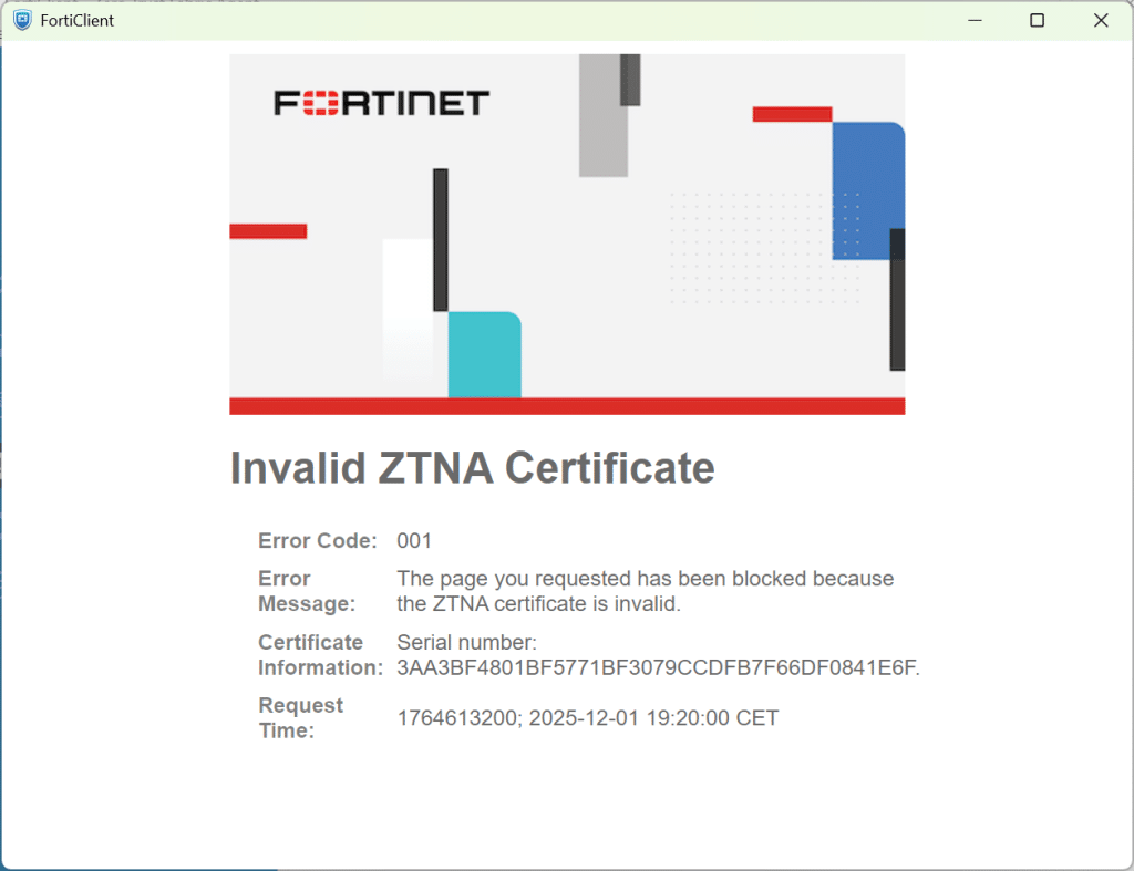 - Correspondance avec une politique proxy Le FortiGate identifie la proxy-policy ZTNA correspondante (ex. policy ID 123).
